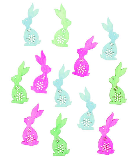 Dřevění zajíčci 4cm - zelenomodrý mix 12ks
