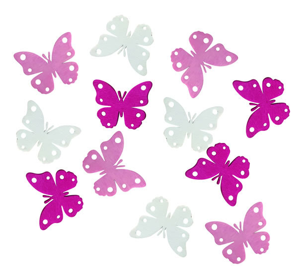 Dřevěné výseky 4cm - motýli růžový mix 12ks