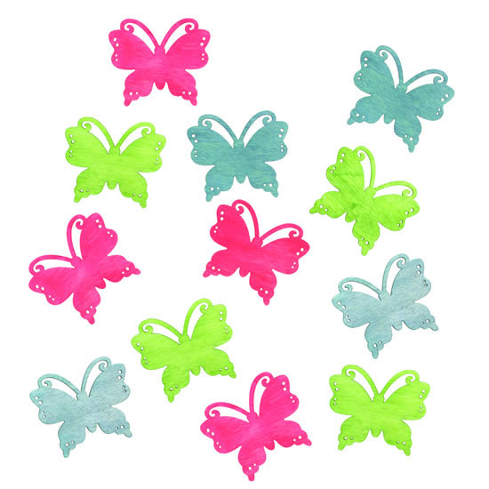 Dřevěné výseky 4cm - motýli zelenorůžový mix 12ks