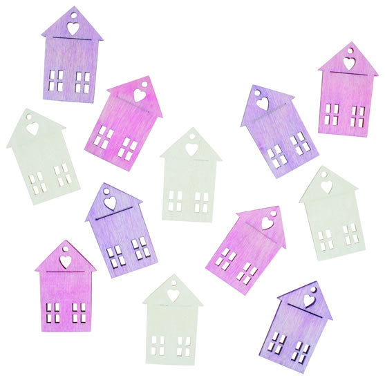 Dřevěné domy 4cm - růžovofialový mix 12ks