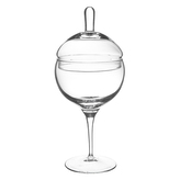 DÓZA SKLENĚNÁ NA NOŽCE VÝŠKA 27CM PRŮMĚR 13CM