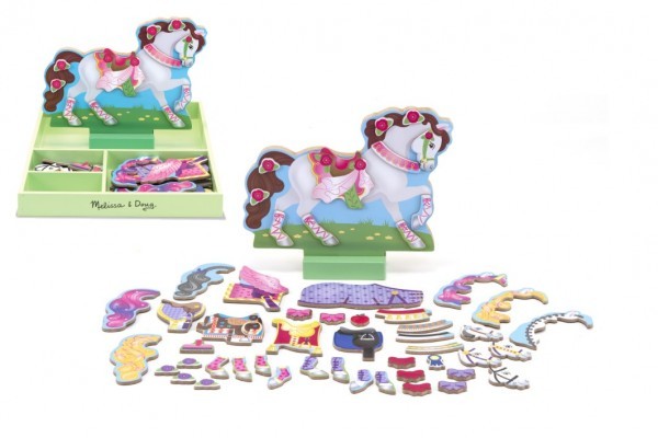 Magnetické oblékání Koník dřevo 55ks v krabiččce 22x30x2,5cm