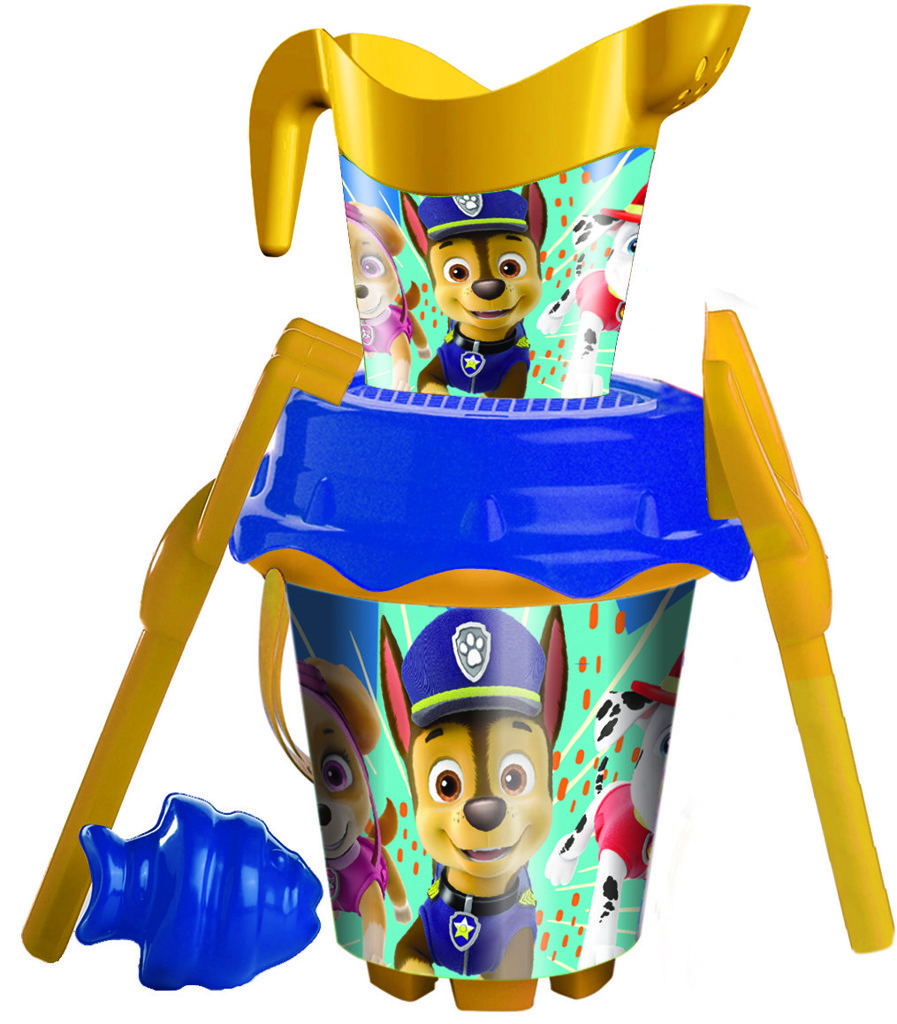 Sada na písek z kvalitního plastu s potiskem Tlapková patrola. Sada obsahuje lopatičku, hrabičky, sítko,2× bábovku a konvičku. Průměr kyblíčku 18cm. Vyrobeno z kvalitního plastu ve Španělsku . przeczytaj całość