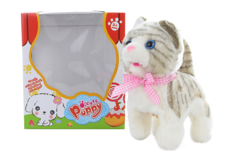 Chodzący kot o wymiarach około 14 x 17,5 x 8 cm. Kot chodzi i wydaje dźwięki. Zasilanie: 2 baterie AA (nie są dołączone). Wymiary opakowania około 16 x 18 x 10 cm. Wiek 3+ przeczytaj całość