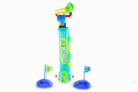 Golf plast o délce cca 50 cm na kolečkách se třemi plastovými holemi s různým zakončením,4 míčky a dvěmi plastovými jamkami. Baleno v síťce.Věk 3+ przeczytaj całość