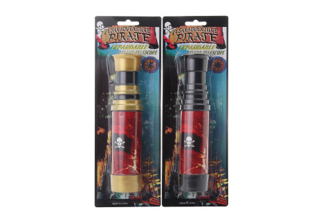 Piracka plastikowa lornetka. Długość w stanie złożonym ok. 19 cm. Wymiary opakowania ok. 28 x 10 x 5 cm. Wiek 3+ przeczytaj całość
