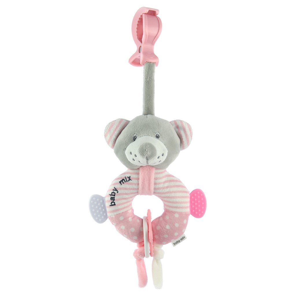 Edukační plyšová hračka s klipem Baby Mix medvěd růžový