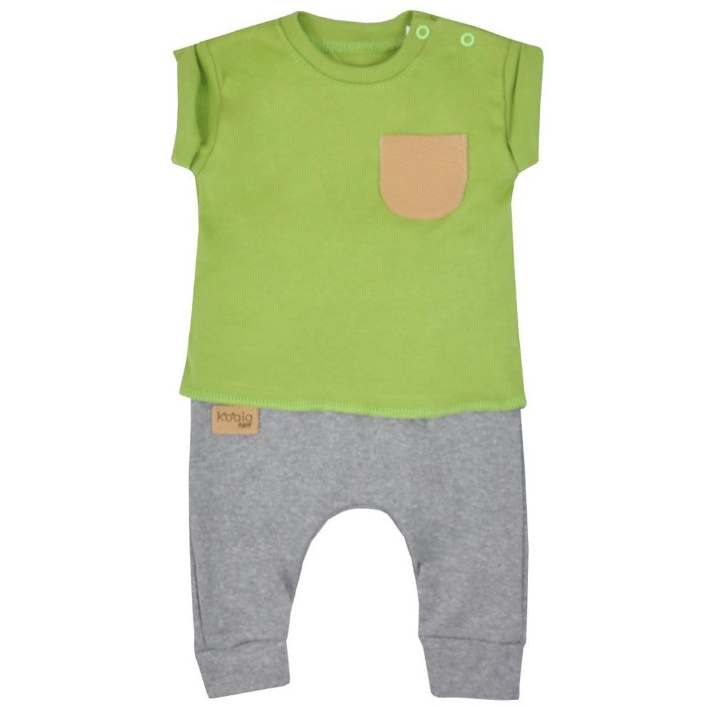 Stylová 2-dílná soupravička Koala Summer Boy. Součástí klučičí soupravičky jsou tepláčky a tričko s krátkým rukávem. Barevné stylové tričko je zdobeno imitací kapsičky a má zapínání na ramínku na cvočky. Tepláčky mají na nohavičkách široký lem a mají stylový snížený sed čímž dodávají ten správný...