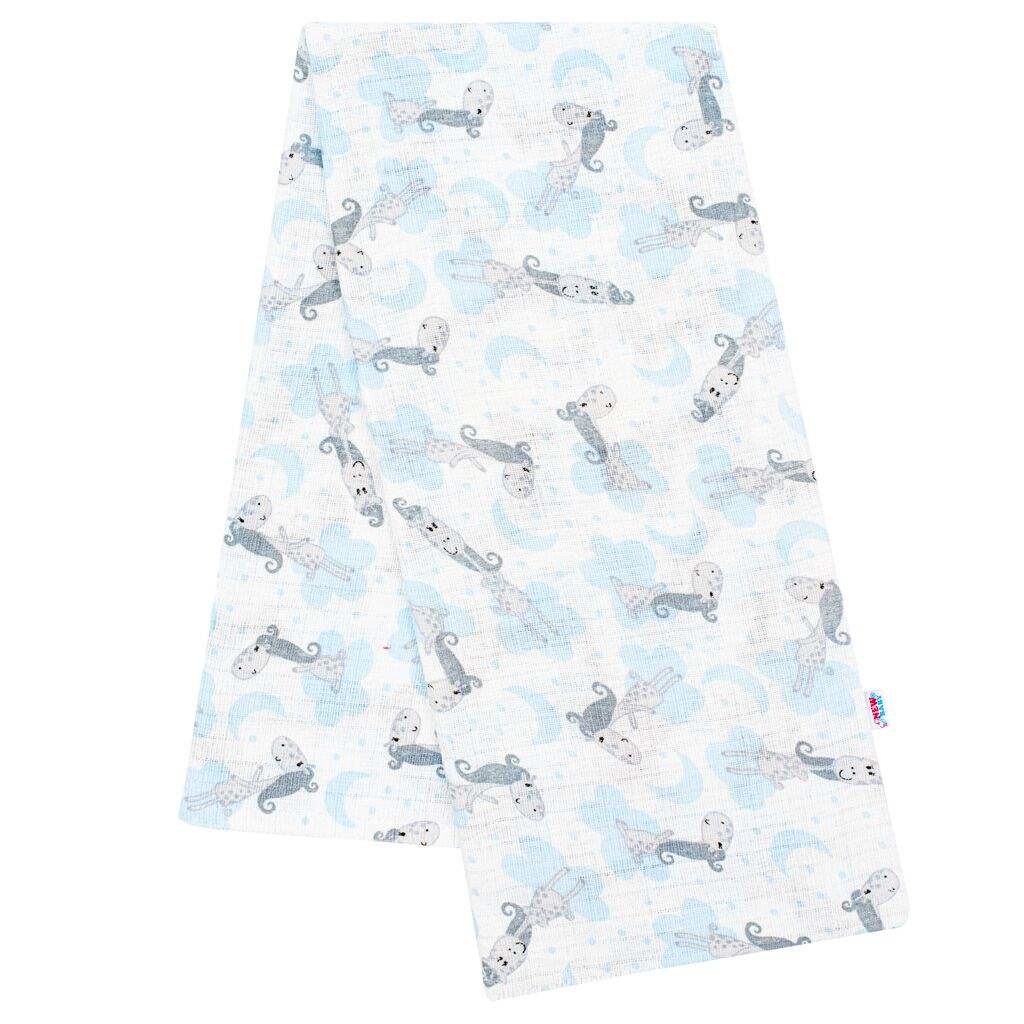 Bavlněná plena s potiskem New Baby bílá s modrou žirafou