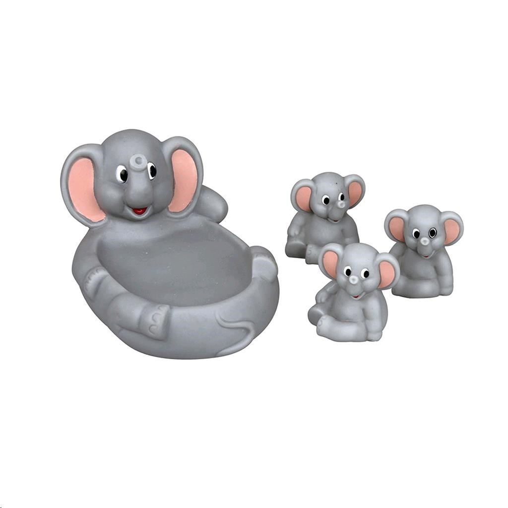 Hračka do vody Bayo sloníci. Tato hračka je ideální na hraní ve vaně i v bazénu. Sada se skládá z jednoho velkého slona a tří malých slůňat, kteří plavou na hladině vody. Hračku napustíte vodou, stlačíte a voda z ní vystřikne. Rozměr velkého slona: dxvxš cca 15x5x10 cm, rozměr malých slonů: vxš cca 5x2 cm. V balení jsou 4 kusy. Určeno pro děti od 3 let.