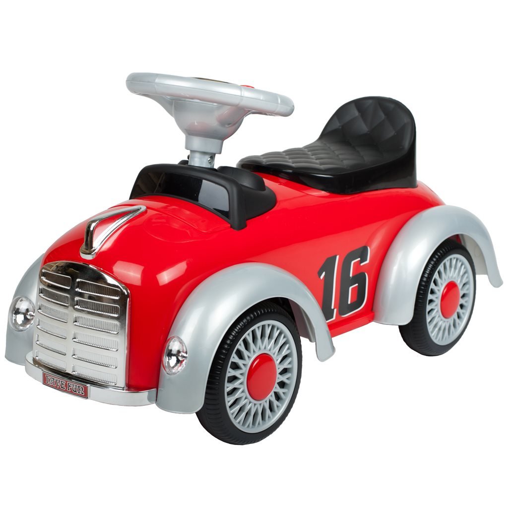 Dětské odrážedlo s vodící tyčí Bayo v podobě historického závodního auta. Jezdítko má na volantu efektní houkačku a tlačíto se třemi uloženými melodiemi. Naše retro autíčko má nenapodobitelný retro vzhled, komfortní široké sedadlo s imitací prošívání, široký volant, velká plastová kola a...