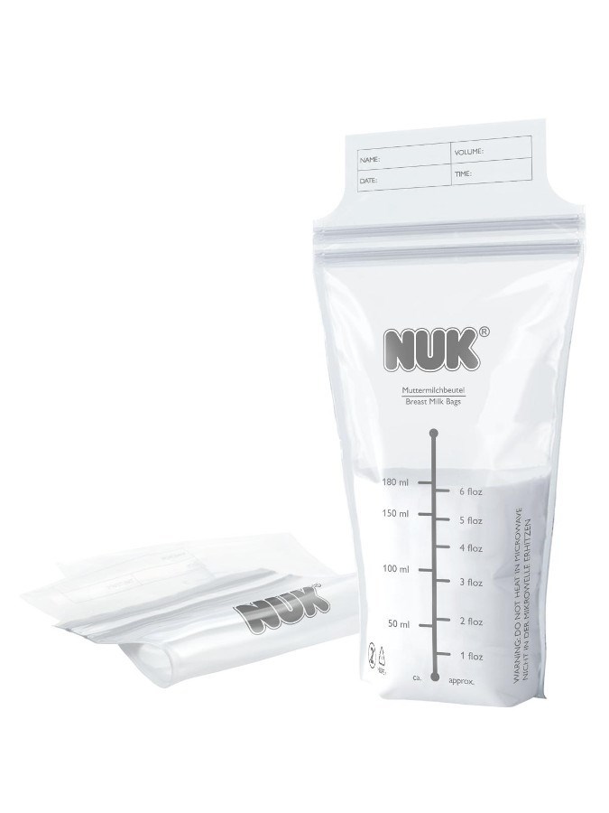 Woreczki na mleko matki NUK. W opakowaniu 25 sztuk. Mleko matki można schłodzić, zamrozić i rozmrozić bezpośrednio w woreczku NUK do mleka matki. Charakterystyka: - oszczędzające miejsce i zapewniające higieniczne przechowywanie mleka matki - zapobiegające przeciekaniu dzięki podwójnemu zamknięciu strunowemu - bardzo wytrzymały materiał, bezpieczne zamrażanie - sterylizowane woreczki jednorazowego użytku - nie zawierają bisfenolu A - odpowiednie jako uzupełnienie do laktatorów NUK i akcesoriów do karmienia piersią