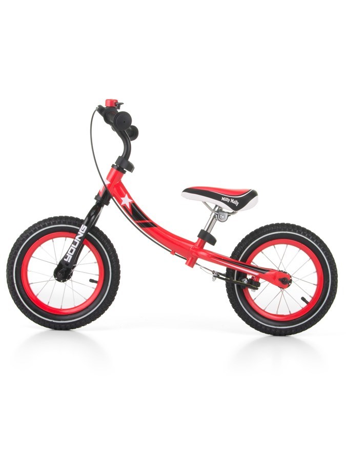 Dětské odrážedlo-kolo Milly Mally Young. - rám lze otočit- nastavitelná výška sedadla- stabilní a lehká ocelová konstrukce- protiskluzové rukojeti - pohodlné, měkké sedadlo- nafukovací kola, průměr 12"- zvonek- ruční brzda- maximální zatížení až 25 kg- délka od zadního k přednímu kolečku 89 cm-...