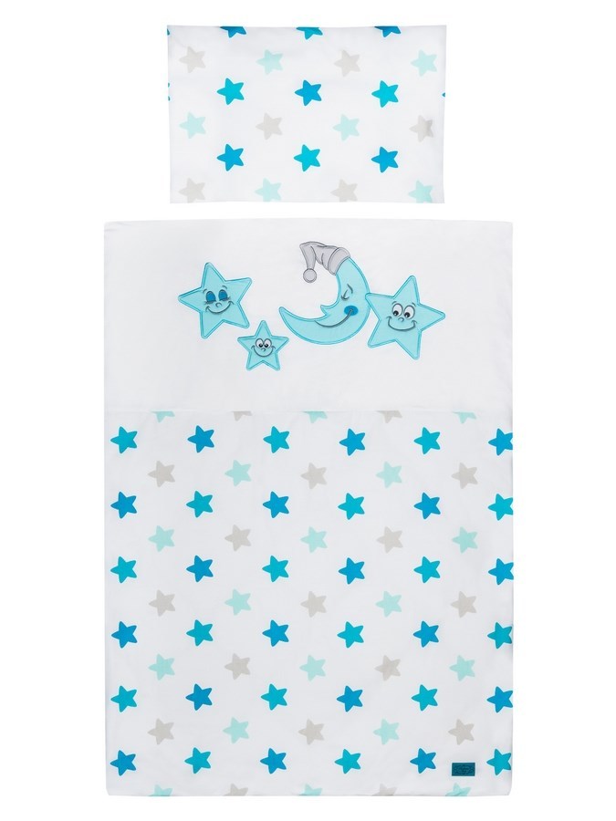 Dětská bavlněná 3-dílná souprava do postýlky Belisima Veselé hvězdičky pro miminka. Soupravu zdobí hvězdičky, velký obrázek měsíčka s hvězdičkami, a příjemné barvy. Je vyrobena z měkkého, příjemného materiálu. Souprava obsahuje povlečení na polštářek cca 40x60 cm, povlečení na peřinku cca 90x120...
