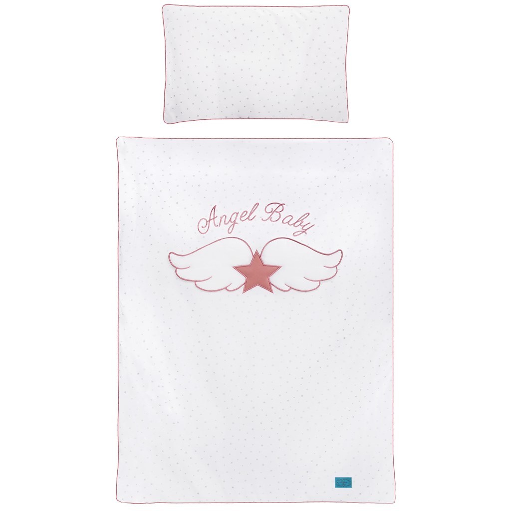 Krásná dětská bavlněná 6-dílná souprava do postýlky Belisima Angel Baby pro miminka. Souprava je zdobena krásnými křidélky a nápisem Angel Baby. Je vyrobena z měkkého, příjemného materiálu. Souprava obsahuje povlečení na polštářek cca 40x60 cm, povlečení na peřinku cca 90x120 cm, mantinel cca 180...