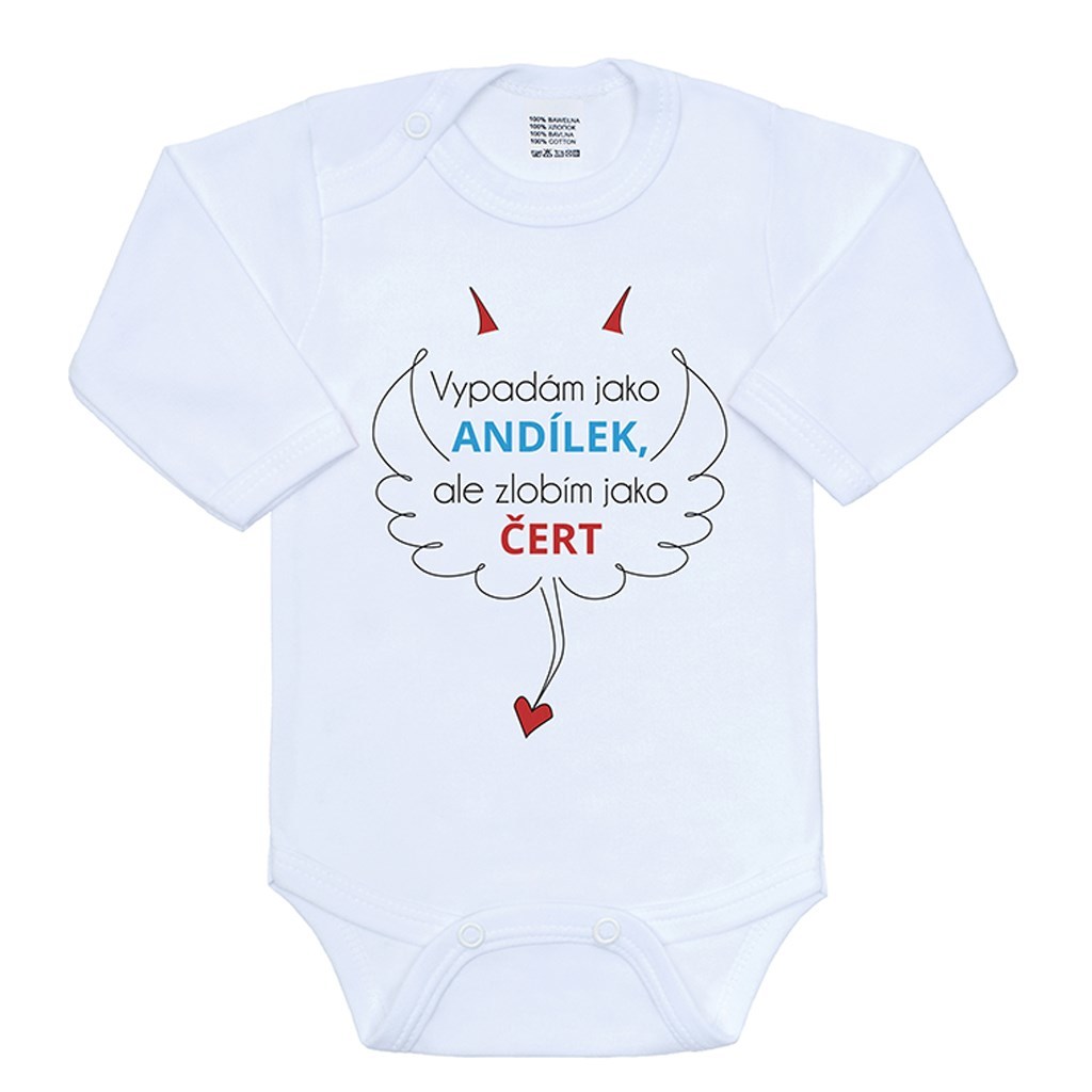 Body s potiskem New Baby Vypadám jako ANDÍLEK, ale zlobím jako ČERT - velikost 80 (9-12m)