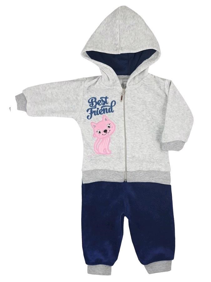 Dětská 2-dílná semišková soupravička Koala Best Friend. Součástí soupravičky jsou tepláčky a mikina. Mikinku zdobí krásný obrázek kočičky s nápisem Best Friend. Má zapínaní na zip po celé délce, pružný lem v pase, na rukávcích a praktickou kapuci. Tepláčky jsou jednobarevné. Díky pružnému lemu na...