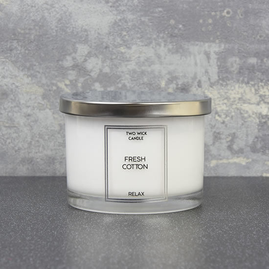 Svíčka se 2 knoty Svěží bavlna 10x7cm stříb. víčko