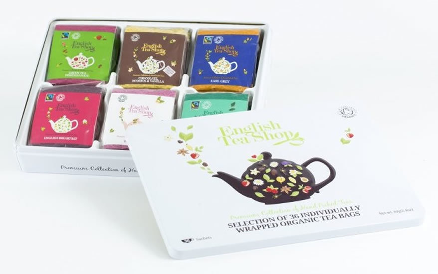 Složení—zelený čaj s granát jablkem—bio a fairtrade zelený čaj (85%), bio plátky růže (5%), bio kousky granát jablka (5%), přírodní příchutě (5%) / English Breakfast—bio a fairtrade černý čistě cejlonský čaj (100%) / Bílý Čaj—bio bílý čaj (100%) / Čokoláda, rooibos, vanilka—bio rooibos (89%),...