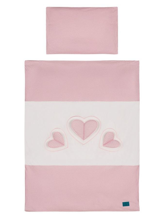 Dětská bavlněná 5-dílná souprava do postýlky Belisima Tři srdce pro miminka. Soupravu zdobí srdíčka. Je vyrobena z měkkého, příjemného materiálu. Souprava obsahuje povlečení na polštářek cca 40x60 cm, povlečení na peřinku cca 100x135 cm, mantinel cca 180 cm, výplň polštářek a peřinka. Materiál...