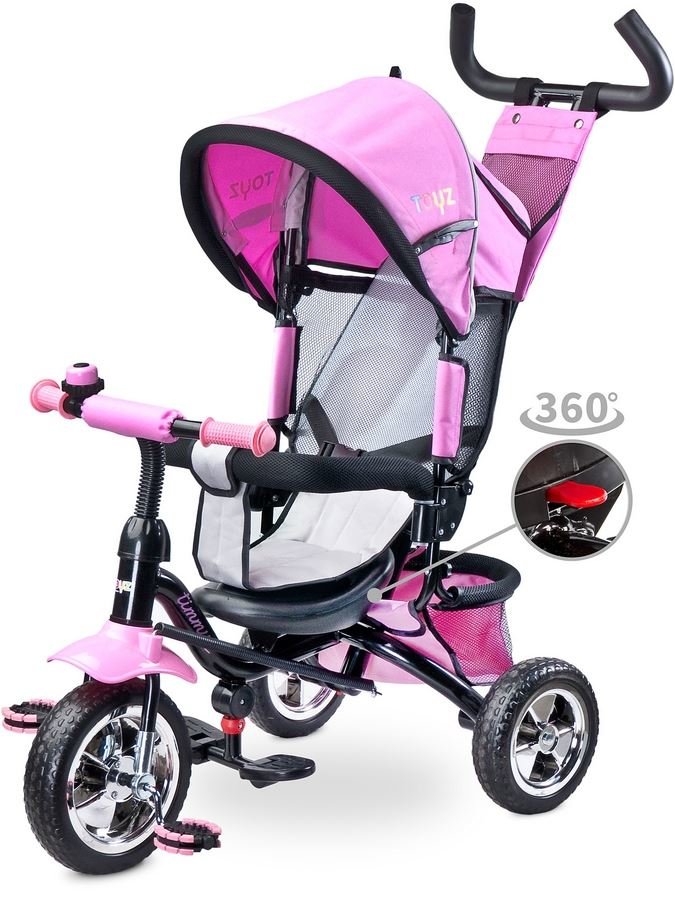 Krásná dětská šlapací tříkolka Toyz Timmy s otočným sedadlem o 360°. Charakteristika:- sedadlo lze otočit o 360°- pro děti od 3-5 let- nosnost 25 kg- zvonek na řídítkách - velká pěnovo-plastová kola- kvalitní konstrukce - praktická stříška- velký úložný košík na hračky- praktická kapsička v...