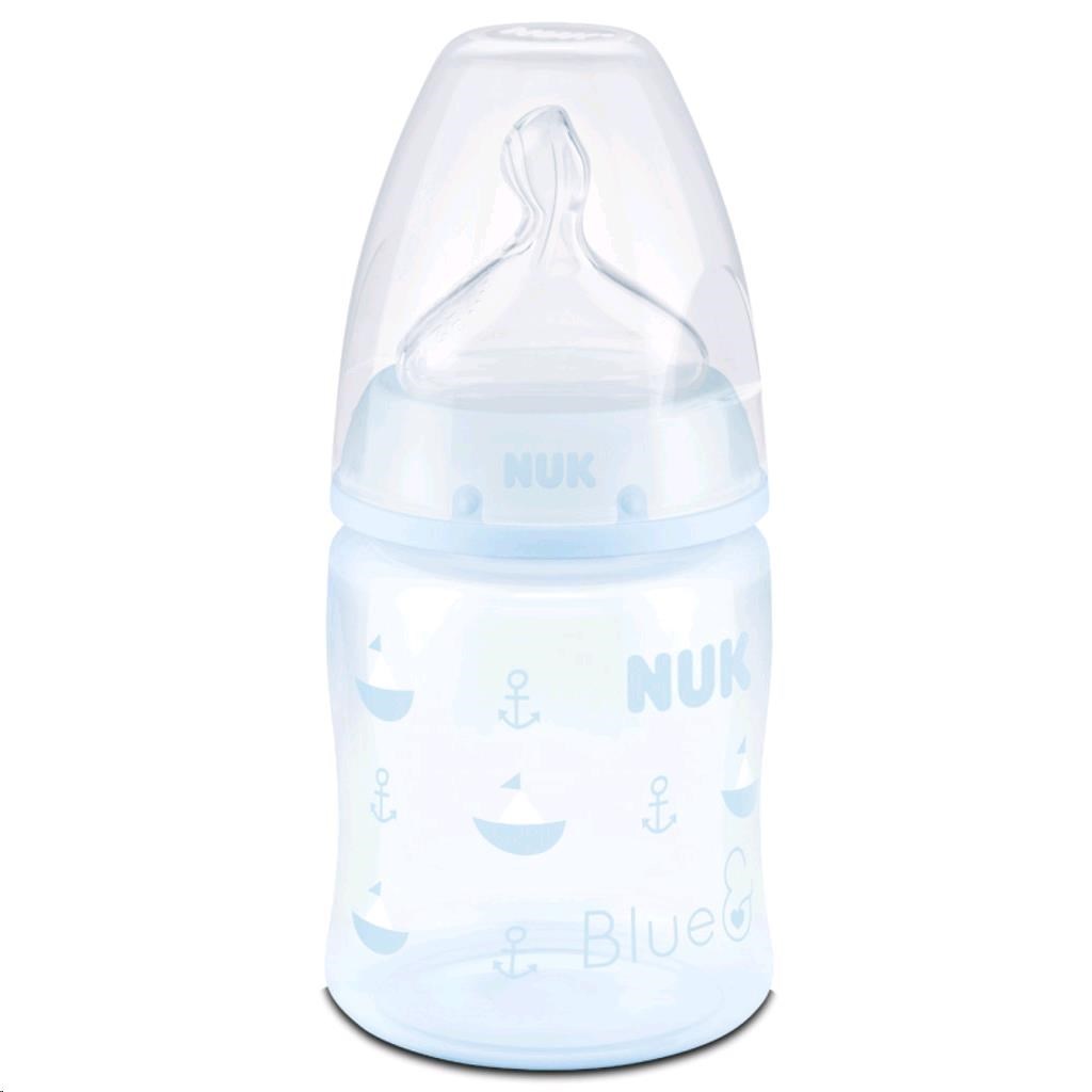 Krásná kojenecká láhev FC Blue NUK s uzávěrem a obrázkem. NUK láhev First Choice Rose má zvlášť měkkou silikonovou savičku pro věk dítěte 0–6 měsíců, se středně velkým otvorem M (pro umělou mléčnou výživu). Vyrobena z vysoce kvalitního nerozbitného plastu polypropylenu a neobsahuje BPA (Bisfenol A). Obsah láhve 150 ml. Klinicky testováno.