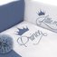 Krásná dětská bavlněná 6-dílná souprava do postýlky Belisima Royal Baby pro miminka. Souprava je zdobena nápisem a obrázkem koruny. Je vyrobena z měkkého, příjemného materiálu. Souprava obsahuje povlečení na polštářek cca 40x60 cm, povlečení na peřinku cca 100x135 cm, mantinel cca 180 cm, výplň...