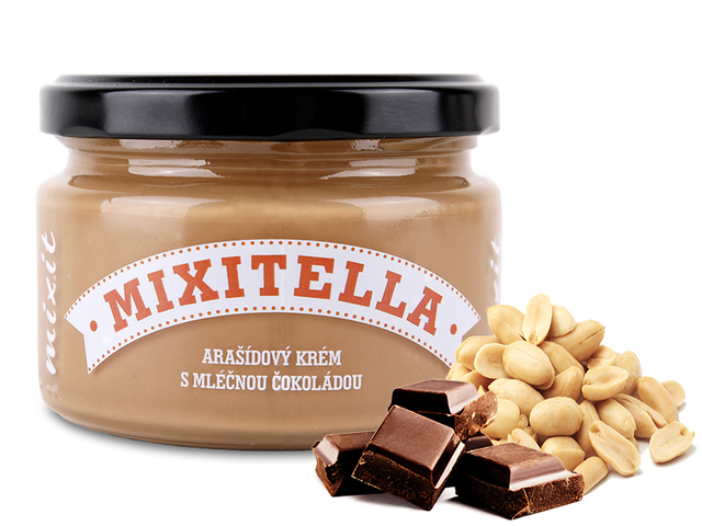 Přichází Mixitella, která nešetří na burských oříšcích pražených horkým vzduchem! 75% arašídový krém s prémiovou mléčnou belgickou čokoládou Callebaut má snad jedinou chybu - jednou lžičkou to neskončí:) Namísto běžného cukru je v čokoládě použito méně kalorické sladidlo maltitol. Skvěle chutná...