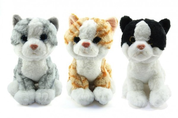 Kočka sedící plyš 23cm se zvukem asst 3 barvy