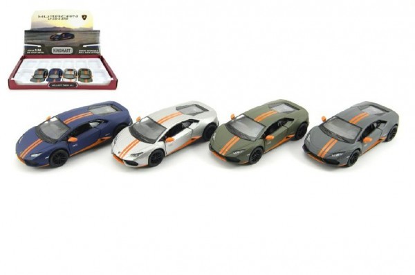 Auto Kinsmart Lamborghini Huracan kov/plast 12cm na zpětné natažení 4 barvy 12ks v boxu