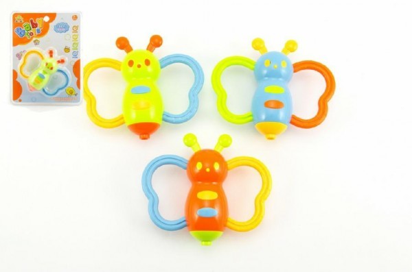 Chrastítko motýl plast 10cm asst 3 barvy na kartě 3m+
