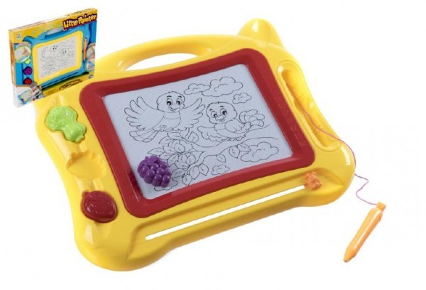 Magnetické tabulka obsahuje pero na psaní a razítka. Pokud se Vám obrázek nepovede, nezoufejte. Obrázek lze jedním tahem smazat a namalovat nový. Vhodné od 3 let. przeczytaj całość