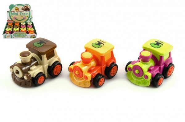 Mašinka/Vláček plast 8cm (1ks) 3 barvy na setrvačník 18m+