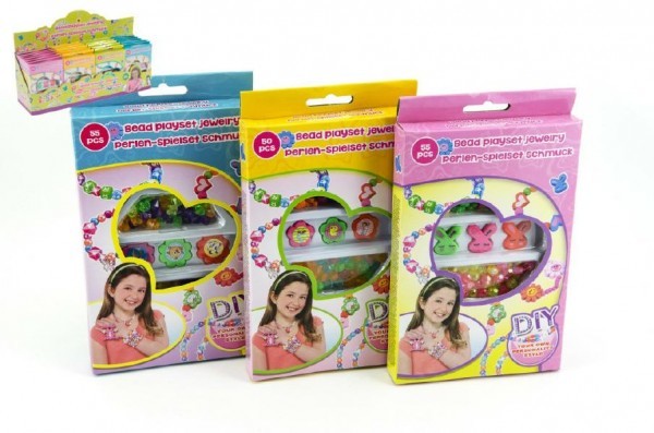 Sada korálky plast asst 4 druhy v krabičce 12x20x2cm 24ks v boxu