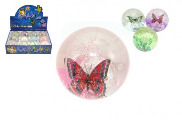 Míček/hopík motýl svítící 7cm asst v sáčku 12ks v boxu