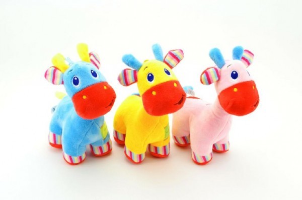 Žirafa s chrastítkem plyš 24cm asst 3 barvy 0+