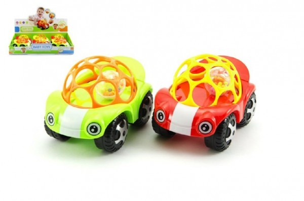 Autíčko s chrastítkem plast 12cm asst 2 barvy 6ks v boxu