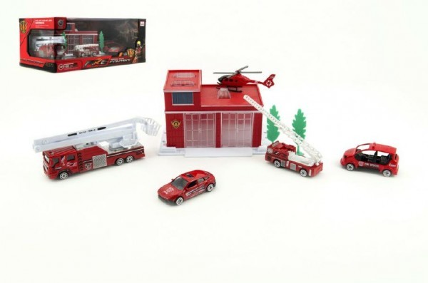 Sada hasičská stanice/garáž plast 34x15cm, 3 druhy (1 sada v krabici)