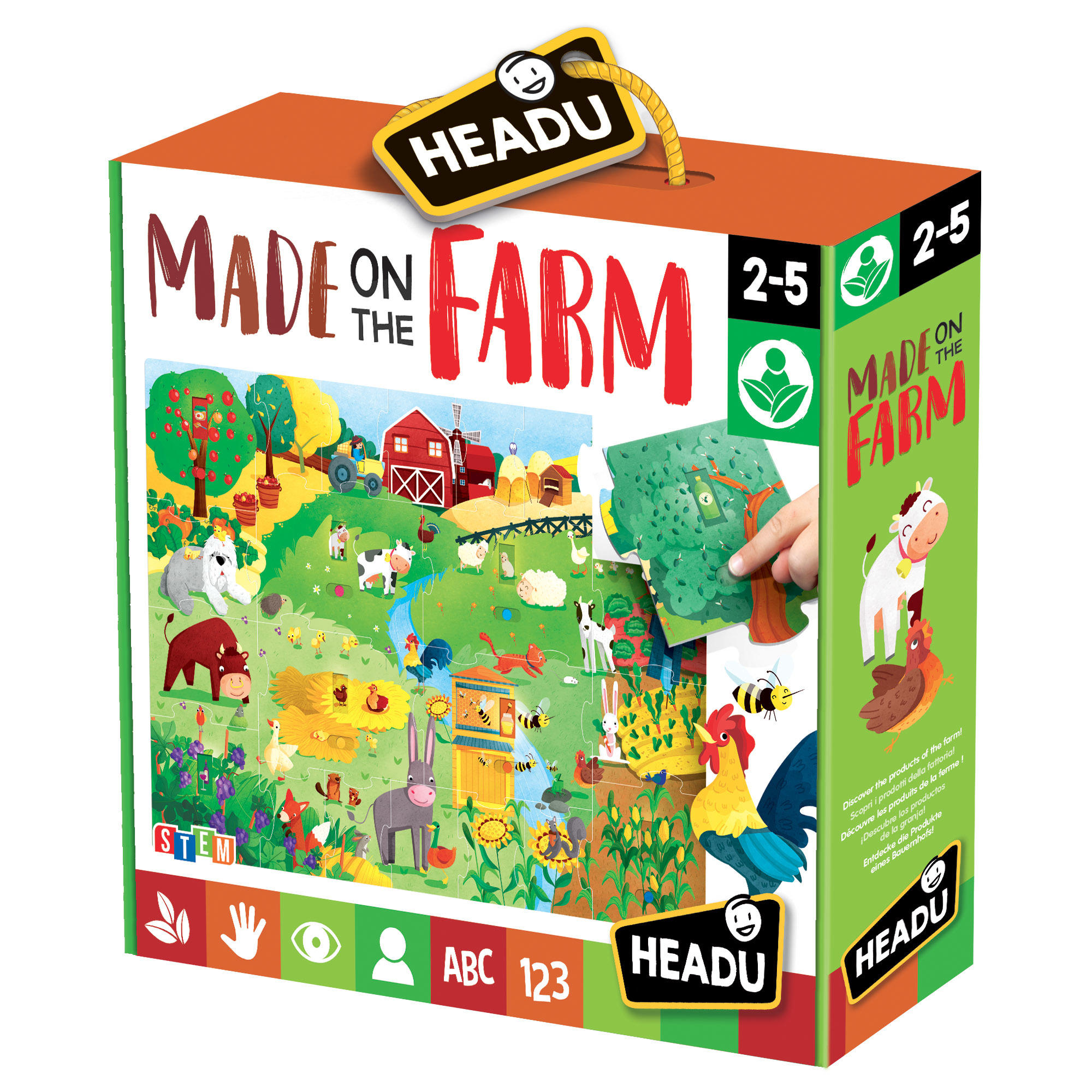 Objevte produkty přírody! Jak se vyrábí med a od jakého zvířete je? Odkud pochází vlna? A z čeho se vyrábí popcorn? Sestavte toto maxi puzzle s obrázky z farmy a posuňte okénka tak, abyste objevili spoustu zvláštností ohledně původu několika přírodních produktů originálním a zábavným způsobem!...