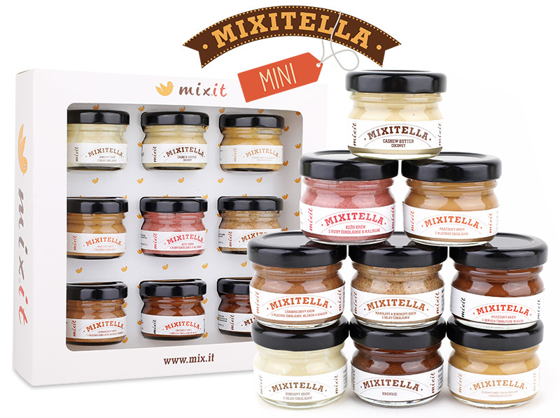 Dárková sada 9 MiniMixitell je ten nejlahodnější způsob, jak potěšit chuťové buňky někoho blízkého nebo přímo ty vlastní. :-) V elegantní krabičce čeká královská degustace oříškových a arašídových krémů od Mixit. Mezi 9 Mixitellami najdete 2 úplné novinky, které běžně nekoupíte - podmaní si vás...