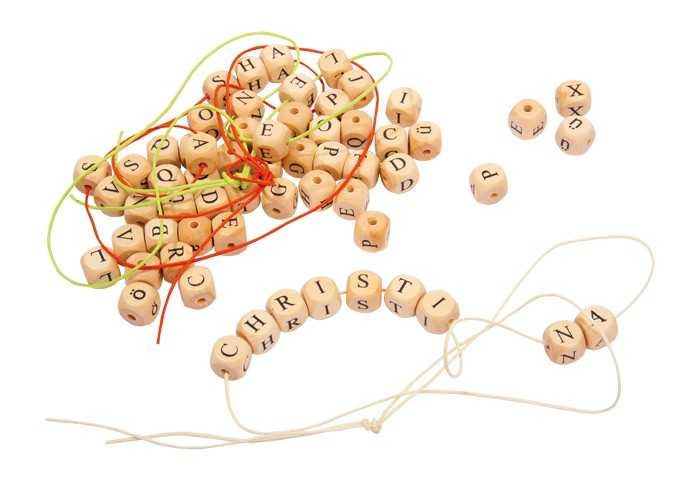 Zhruba 300 dřevěných kostek potištěných písmenky, včetně 4 stuh k navlékání. Lze tvořit řetízky s jmény nebo jen na stole skládat slova. Hravým způsobem naučí poznat písmena a vybídne k prvním „pokusům psát“.Německá firma Legler zaměřená na výrobu kvalitních dřevěných hraček od roku 1996. Všechny...