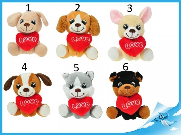 Plyšový pes sedící se srdíčkem 1ks číslo 6