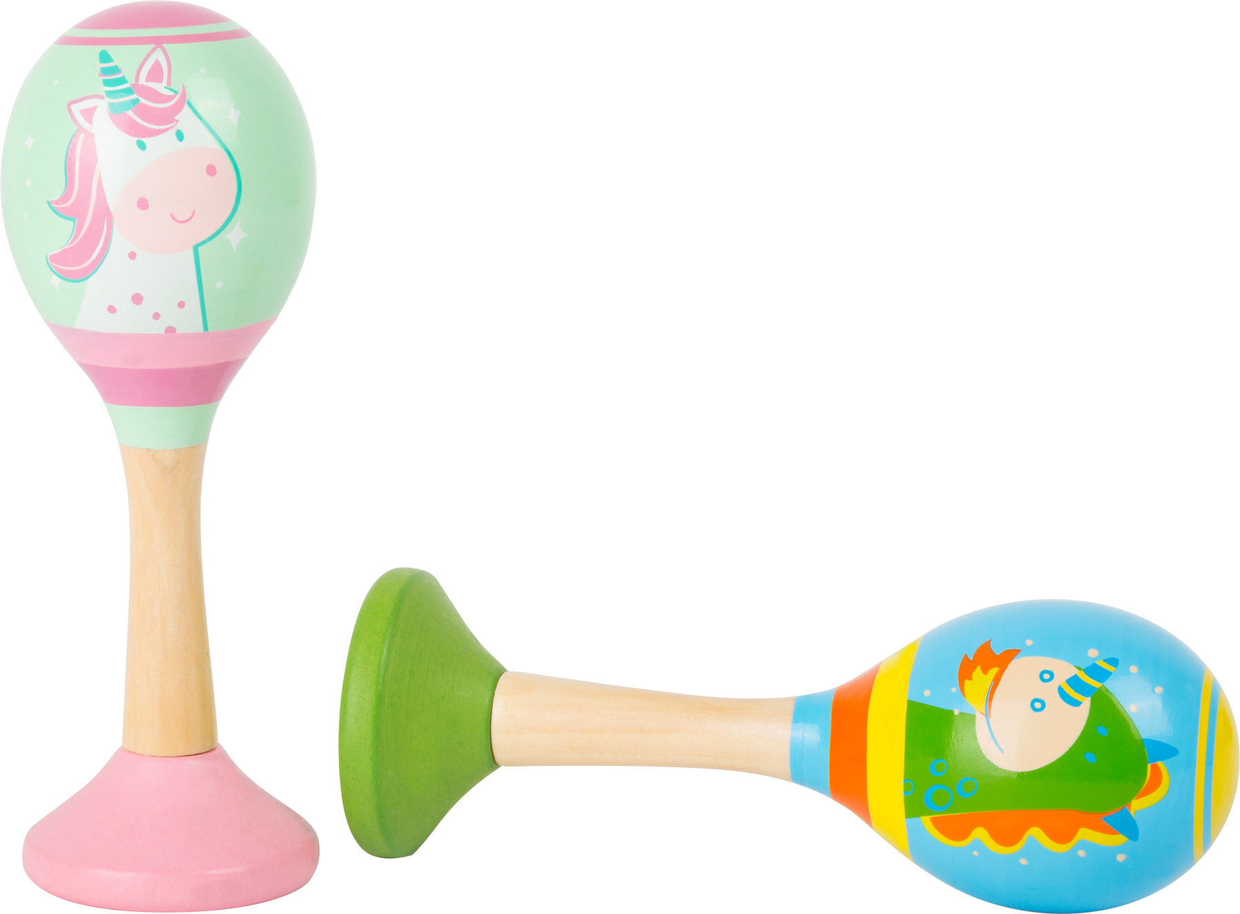 Něco tady chrastí! Rumba koule vyrobené z kvalitního dřeva ve dvou krásných barvách se vzory pro dívky i chlapce. Děti si mohou trénovat své cítění pro rytmus a připravit se na hudební výchovu.