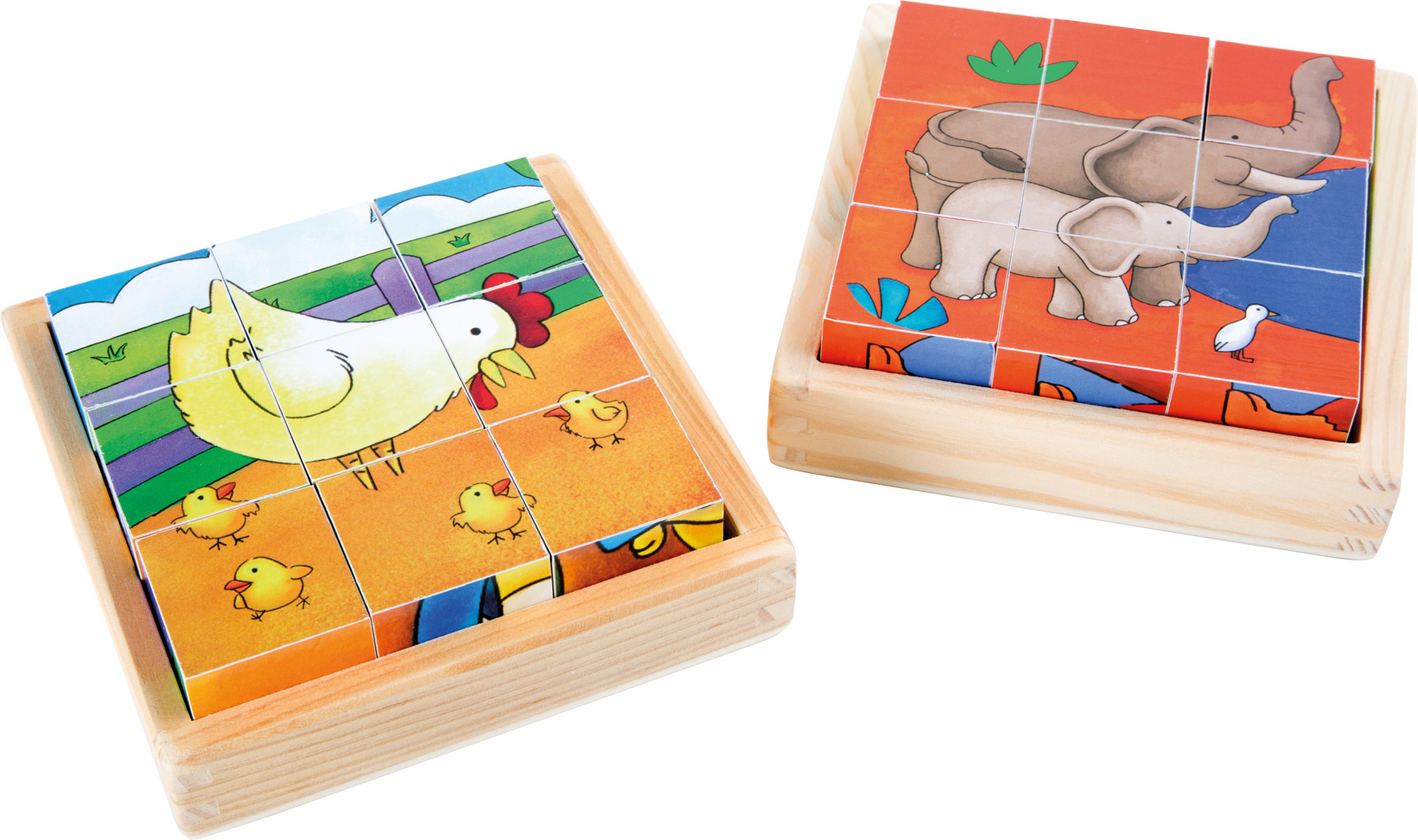 Small Foot Dřevěné obrázkové kostky Farma a ZOO