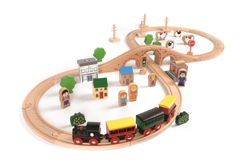 Nastupujte, prosím! Tato krásná vláčkodráha je perfektní pro mladé železniční nadšence. Děti si mohou dráhu postavit dle své představivosti, každá kombinace je možná, vláčkodráha také obsahuje viadukt! Tento 50 dílný set obsahuje 17 ks dřevěných kolejnic, mašinku s 3 vagony, stromy, budovy,...