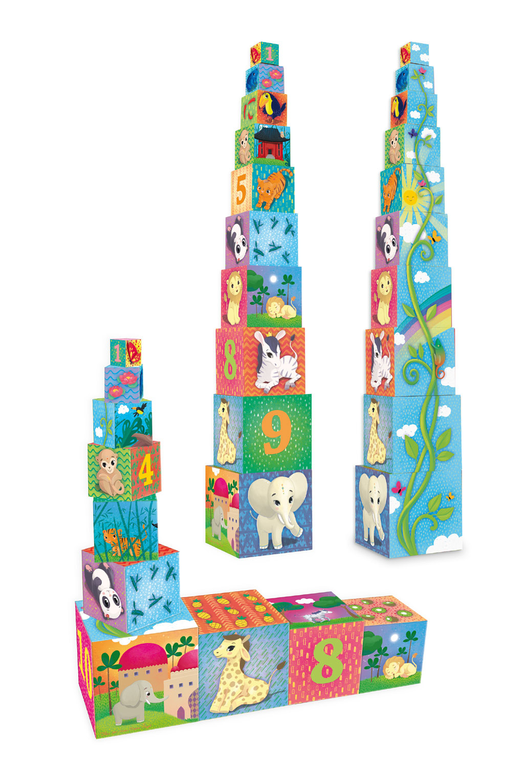Deset kartonových skládácích kostek s pěknými ilustracemi. Děti se při hraní si naučí jak skládat kostky a také o zvířatech a jejich potravě, barvách... Rozvíjí koordinaci ruka-oko a zručnost dětí. Hračky Vilac mají značku francouzské agentury ADEME, to znamená, že tyto dřevěné hračky jsou...