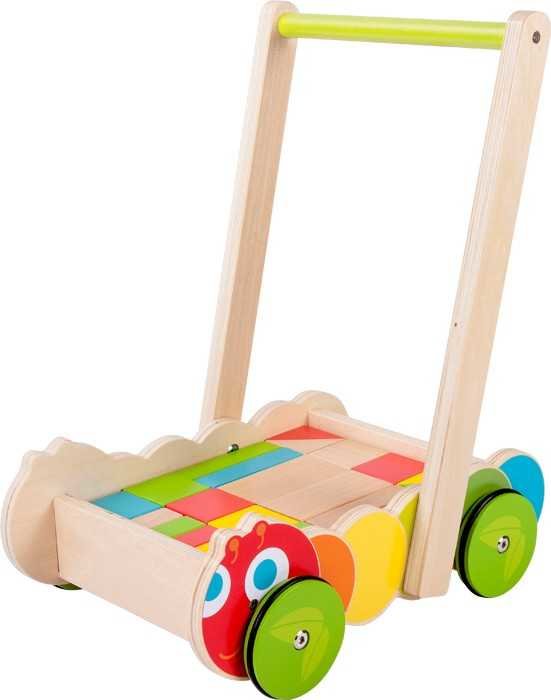 Small Foot Chodítko dřevěné kostky ve vozíku housenka