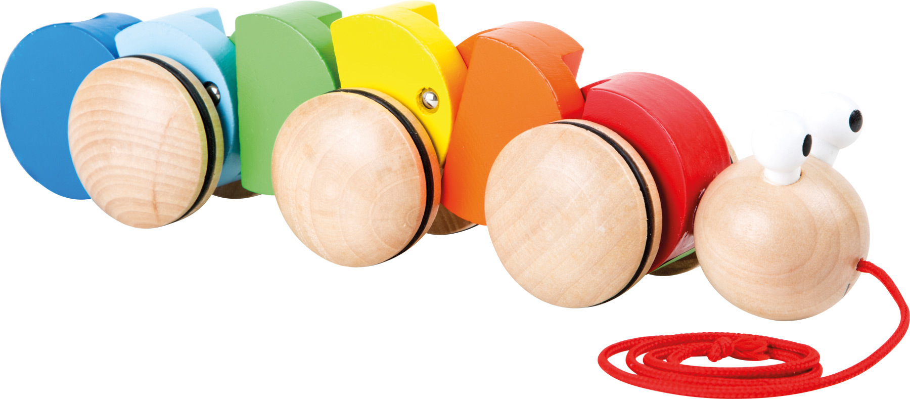 Dřevěná tahací housenkaDřevená barevná tahací housenka s veselýma očima. Při tahání hračky se části těla housenky rozpohybují.Německá firma Legler zaměřená na výrobu kvalitních dřevěných hraček od roku 1996. Všechny dřevěné hračky značky small foot mají označení CE a jsou vyráběny dle evropské...