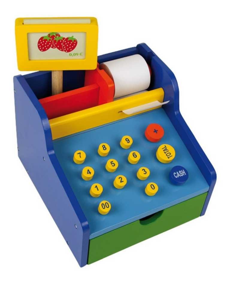 S barevně lakovanou pokladnou s „tlačítky“ dělá nákup ještě větší radost! Display se dá obměnit čtyřmi kartami s 8 motivy nakupovaného zboží, velký šuplík nabízí dost místa pro hrací peníze!Německá firma Legler zaměřená na výrobu kvalitních dřevěných hraček od roku 1996. Všechny dřevěné hračky...