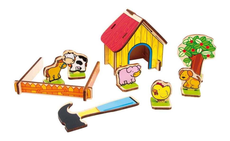 Farma se skládá z 5 zvířat, plotu, stromu, stodoly a kladiva. Celkem 22 dílů skládačky.Německá firma Legler zaměřená na výrobu kvalitních dřevěných hraček od roku 1996. Všechny dřevěné hračky značky small foot mají označení CE a jsou vyráběny dle evropské normy pro bezpečnost hraček EN 71....